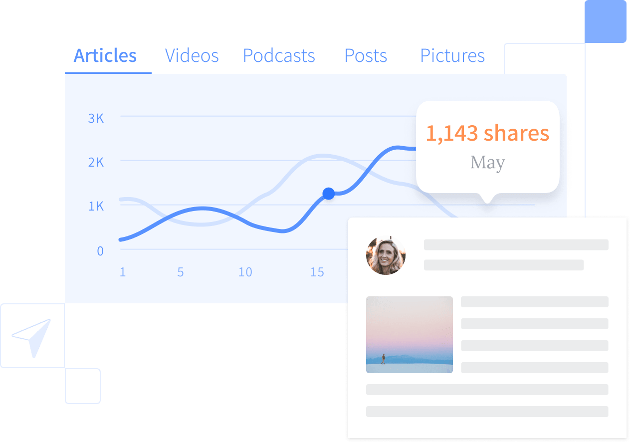Learn how your contents' aggregate reach on social media has changed over time, or check the performance of individual pieces within seconds.